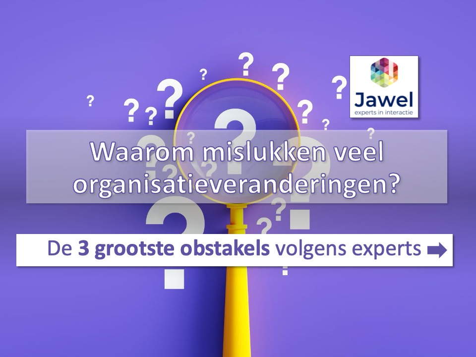 Volgens onderzoekers en verandermanagement-goeroes zijn er DRIE OBSTAKELS die élke organisatie vroeg of laat tegenkomt: